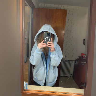 "Honestly the softest hoodie I own. I got the Blue and it looks amazing layered over jeans. Perfect for winter walks."