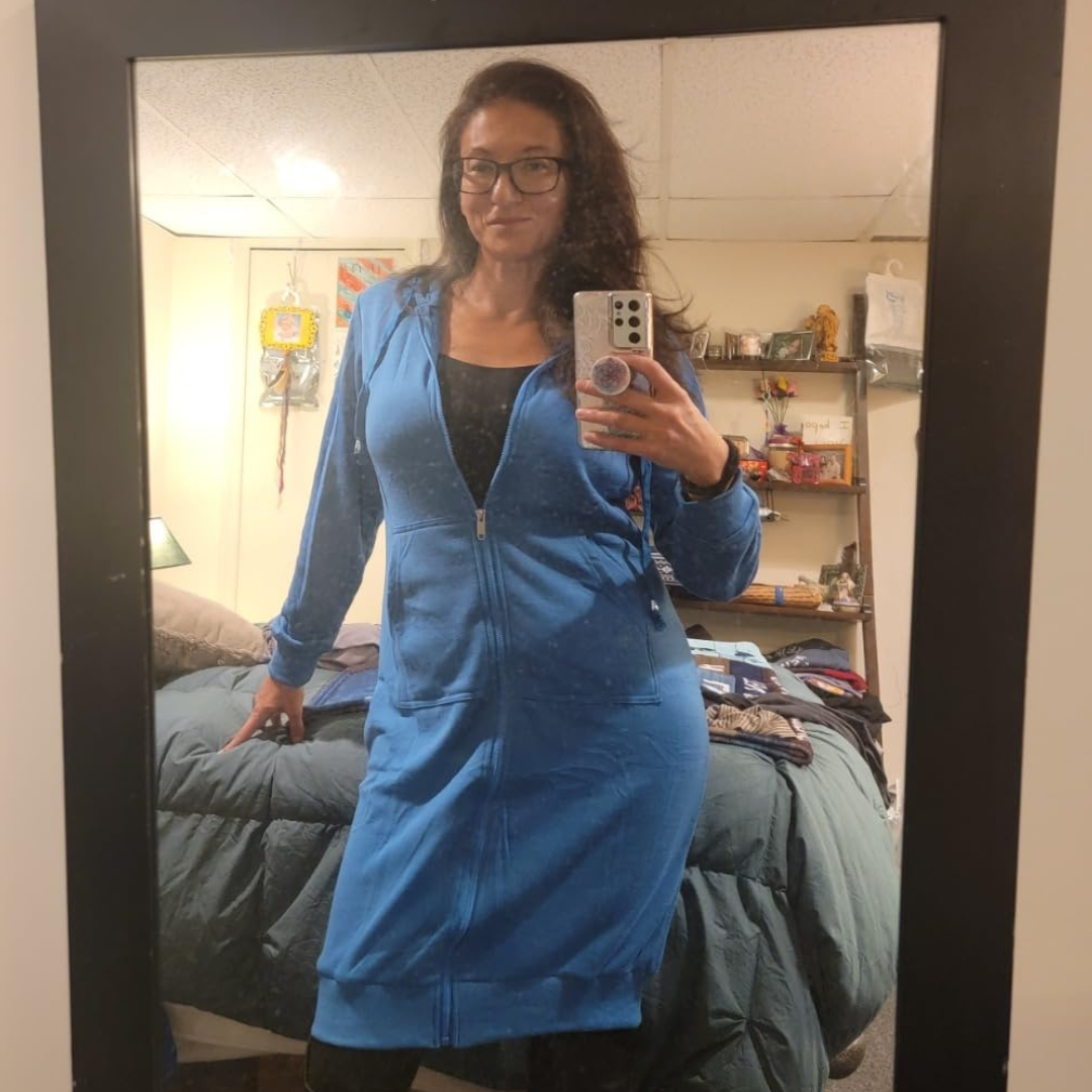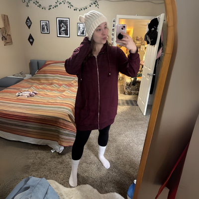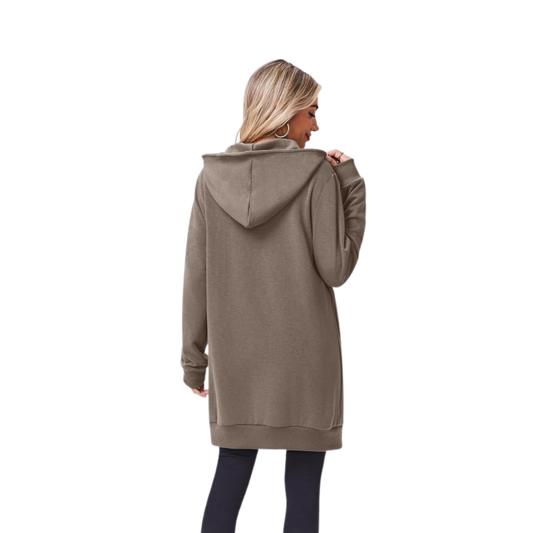 “This hoodie feels like a warm hug. The long fit is perfect with leggings and gives me a cozy yet stylish look. I’ve been wearing it nonstop.”